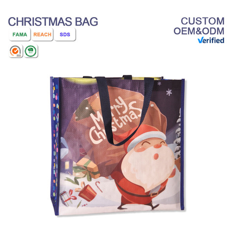 WZPKG Impresión de Papá Noel Regalo de Navidad Laminación Bolsa de compras tejida Patrón de logotipo personalizado Ecológico Regalo grande Bolsa de regalo ecológico de Navidad