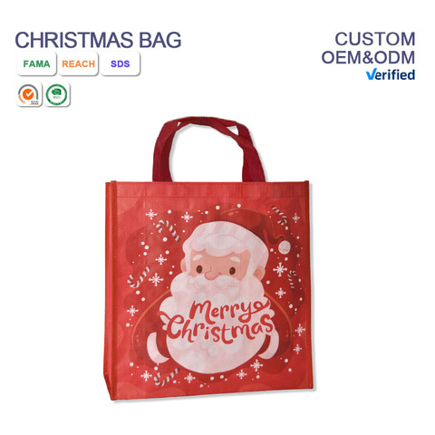 Fabricantes OEM ODM 80g Bolsas no tejidas de Navidad Bolsa de compras ecológica Tamaño personalizado y bolso con logotipo