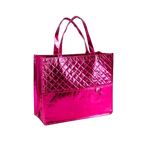 Yüksek kaliteli özel boyutta logo baskı metalik lamine olmayan dokuma çanta çevre dostu olmayan dokuma alışveriş çantası